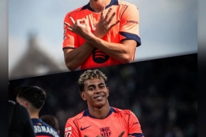 费尔明在进球后也做出与亚马尔同款庆祝动作,向这位刚刚遭遇重伤的队友致敬,亚马尔也在个人社媒晒出两人照片,配文写道:“爱你,兄弟”